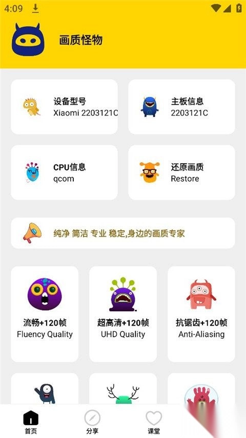 画质怪物专为“吃鸡”玩家打造,低配置设备也能轻松畅享高画质体验,支持120帧率极致画质,抗锯齿功能可直接拉满,效果出色,让各类手机都能流畅运行游戏,收获众多玩家好评。除优化游戏画面外,还能一键快速查看手机型号、主板信息、CPU信息等设备详情,也可分享给伙伴,有需求的朋友,不妨尝试一番。