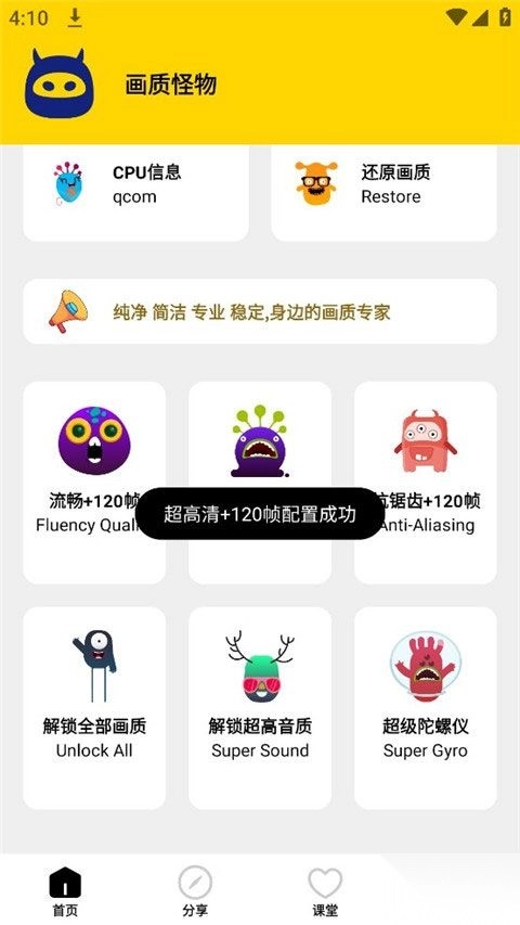 3、安全可靠无风险,可放心使用,支持120帧极致画质,一键即可切换不同画面效果。