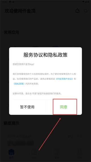 当出现【服务协议和隐私政策】的弹窗时,请仔细阅读里面的相关条款,之后点击【同意】按钮,这样就能继续使用服务了。