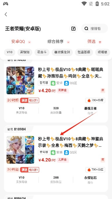 2、选择你需要租赁账号的游戏