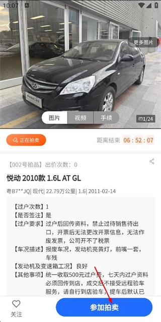 在车辆详情页面核实相关信息无误后,点击“参加拍卖”按钮,即可进入该车辆的竞拍环节。