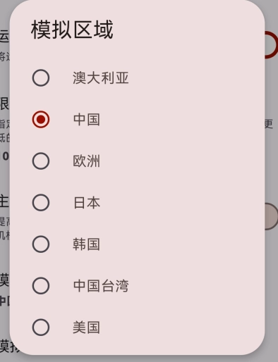 找到【模拟区域】,在弹出来的选项中选择【中国】。
