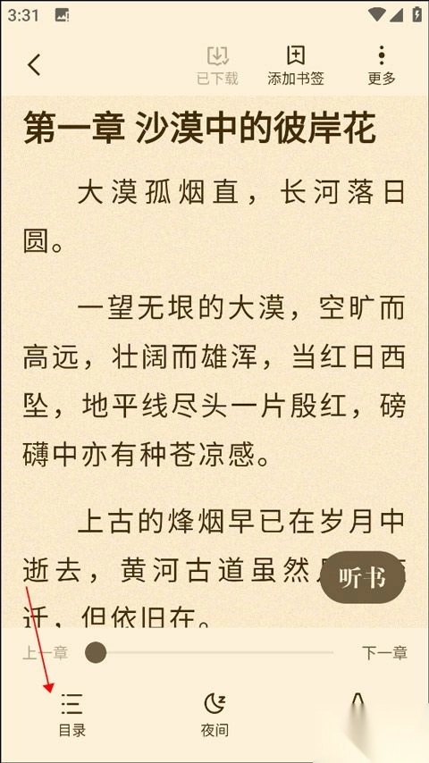 3、打开目录,即可查看小说的章节目录了。