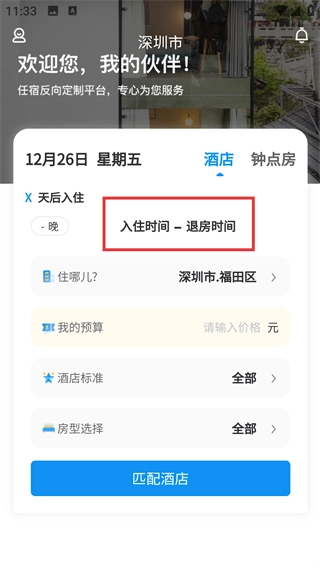 在完成时间、地点、预算等条件的设置后,点击【匹配酒店】按钮,平台将依据反向定制规则,为您推荐契合需求的酒店选项。