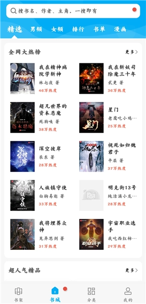 分性别榜单:针对男频与女频内容分别设置推荐榜单,数据覆盖主流阅读平台。
