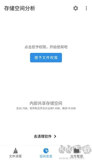 1、在本站安装好XB清理器手机版后,打开应用进入空间总览页面,点击“授予文件权限”按钮。