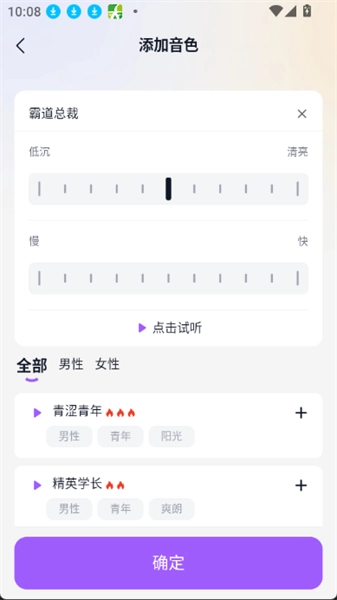提供多元音色供选,用户可依角色特点,为其选定专属声音,进而增强听觉享受。