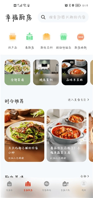 登录账号进入方太幸福家软件后,接着选择幸福厨房板块。