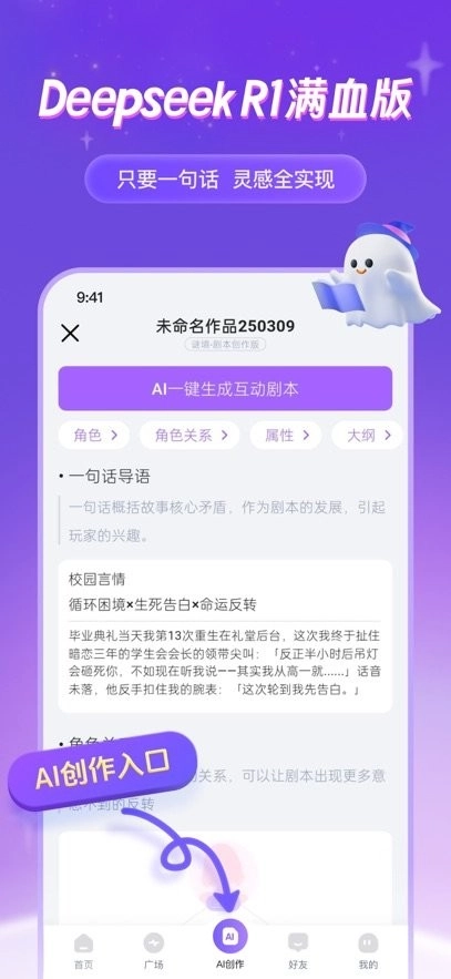 「DeepSeek R1满血版」与「AI创作agent」联手打造的互动剧本平台,只需一句话,就能生成专属于你的剧本世界。