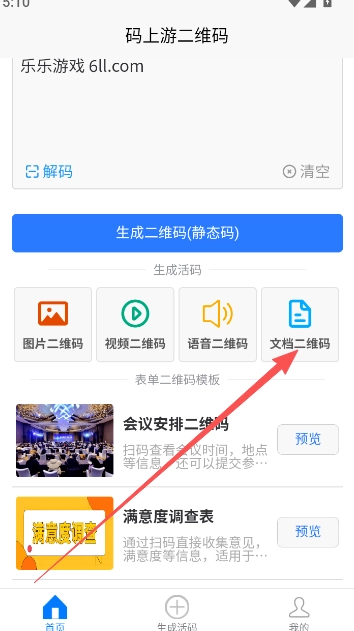 码上游二维码问卷二维码的生成,主要运用软件内的文档二维码生成功能。
