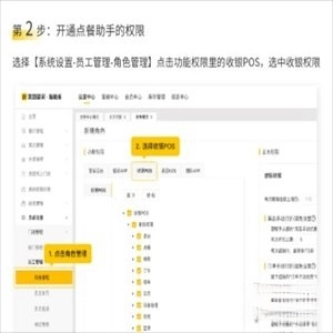 2、依次点击【系统设置】-【员工管理】-【角色管理】,在功能权限模块中找到收银POS选项,勾选对应的收银权限。