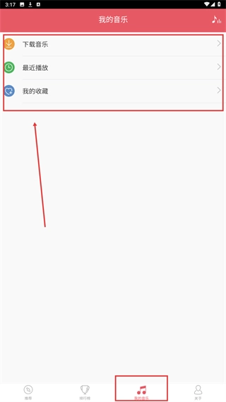 点击底部的【我的音乐】选项,就能进入个人音乐管理页面,在这里可以查看和管理【音乐】【最近播放】【我的收藏】等相关内容。