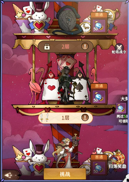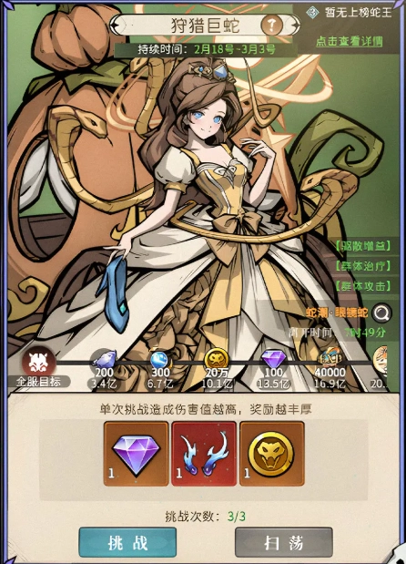 挑战次数:免费扫荡机会消耗完后可消耗钻石进行扫荡。