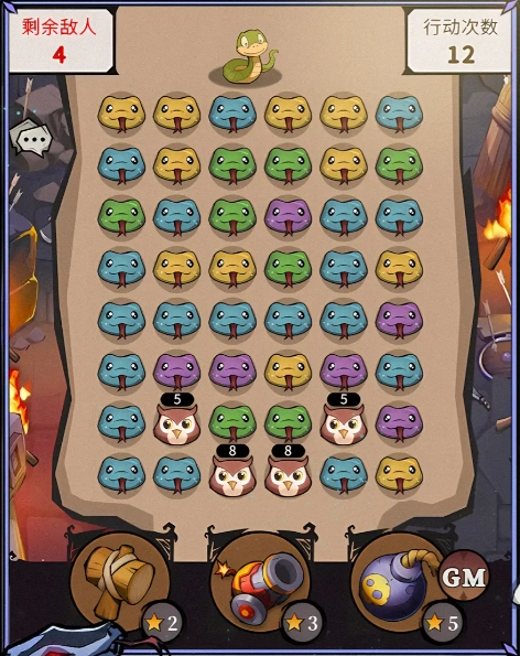玩法:通过连接蛇蛇,来对猫头鹰照成伤害并击败。