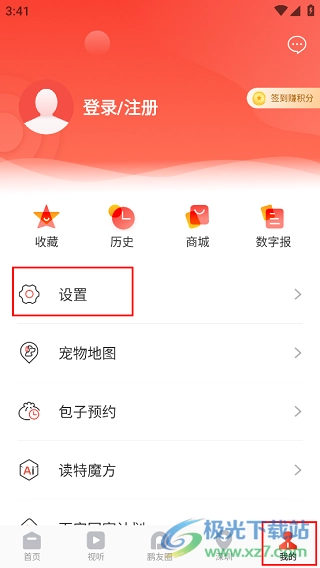 接下来点击右下角菜单栏里的“我的”选项,进入个人中心界面后,要在列表中找到“设置”并点击它。