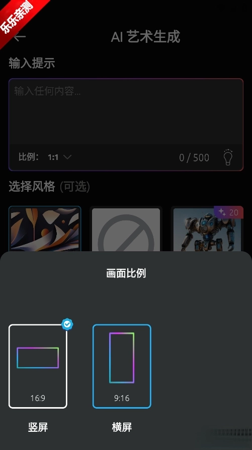 然后在框框输入提示词以及对风格进行选择