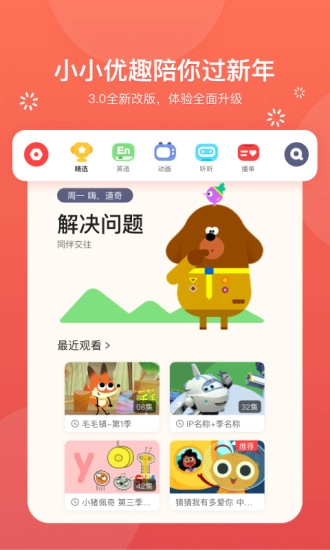 小小优趣App是专门面向儿童启蒙教育打造的安全且优选的动画、视频播放平台,它结合学龄前儿童的成长特点,精心挑选国内外优质动画,致力于借助这些精品动画,以寓教于乐的方式为孩子提供正向引导,覆盖英语、艺术、数学、情商、社交等多方面启蒙内容,营造绿色、安全、健康、快乐的成长氛围,助力孩子更好地成长。