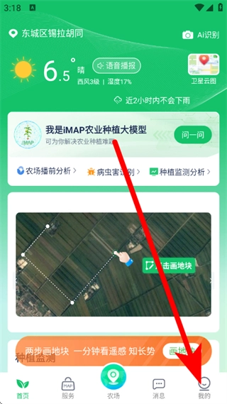打开map智农应用,点击底部导航栏的“我的”选项,即可进入个人中心页面。