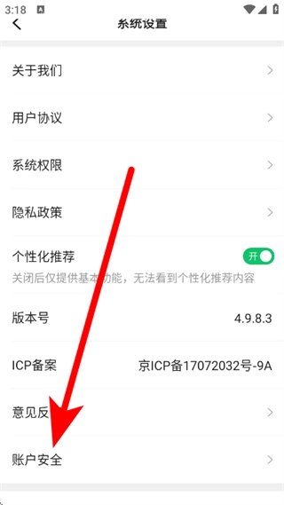 在系统设置界面,选择账户安全选项,即可进入账户安全页面。