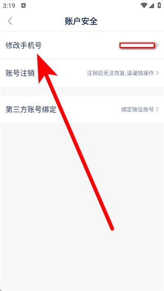 在账户安全页面,点击“修改手机号”选项,即可进入账号验证页面。