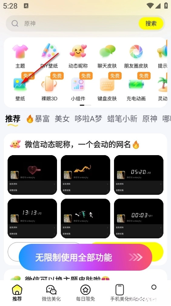 【首页推荐】每次上新的壁纸都会展示在首页最顶部,方便你轻松浏览查看;