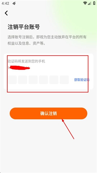 在验证页面获取并填写验证码,接着点击确认注销按钮,就能完成账号注销操作。