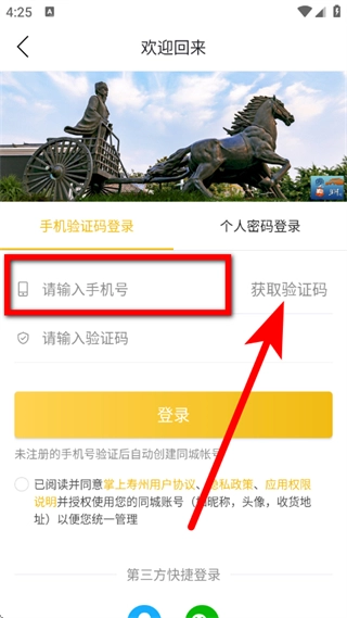 先输入验证码,再勾选对应的用户协议,之后点击登录按钮,即可完成登录操作。