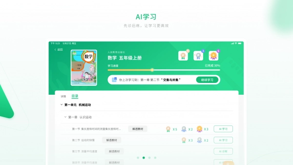 软件专注于凭借全面的教材覆盖和智能的进度跟踪功能,为孩子提供长期、系统的学习支持以及成长陪伴。