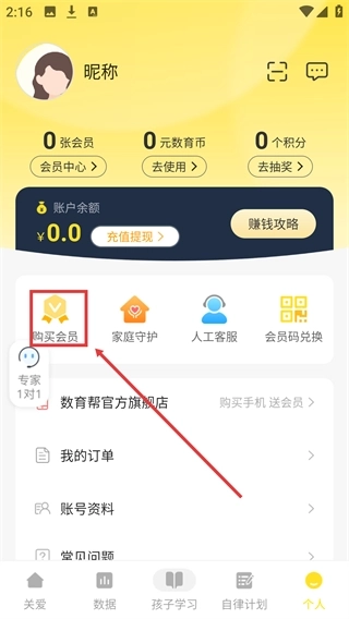 进入【个人】页面后,点击【购买会员】选项,就能进入会员购买的分类选择界面。