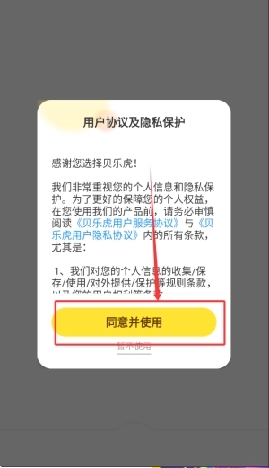 首次打开应用时,需在初始界面阅读并勾选同意选项以确认接受用户协议,之后即可顺利进入程序的主功能页面。