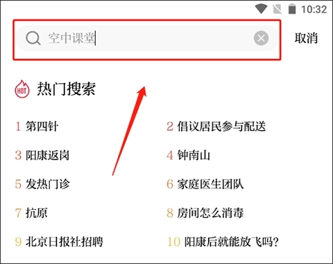 接着在搜索框中输入“空中课堂”。