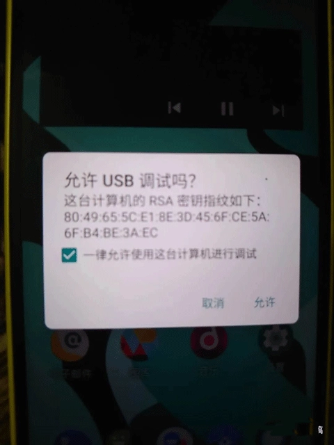 将手机连接上电脑调试打勾点击允许
