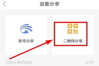 之后有两种共享机器设备的途径,第一种是借助账号来实现共享,第二种是通过扫描二维码来达成共享,要是想更简便的话,可以选择“二维码共享”这种方式。