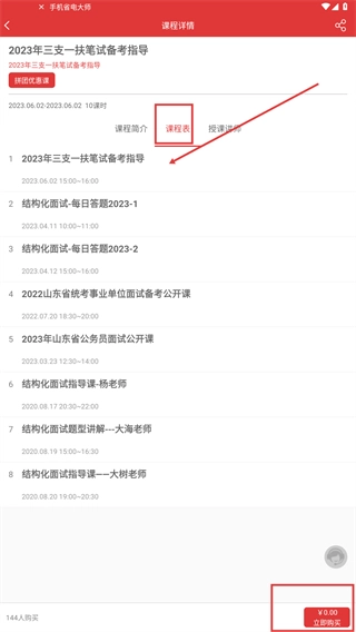 在课程详情页面切换到【课程表】标签页,就能查看具体的课程安排;确认无误后,点击【立即购买】按钮,即可完成课程的购买与获取流程。