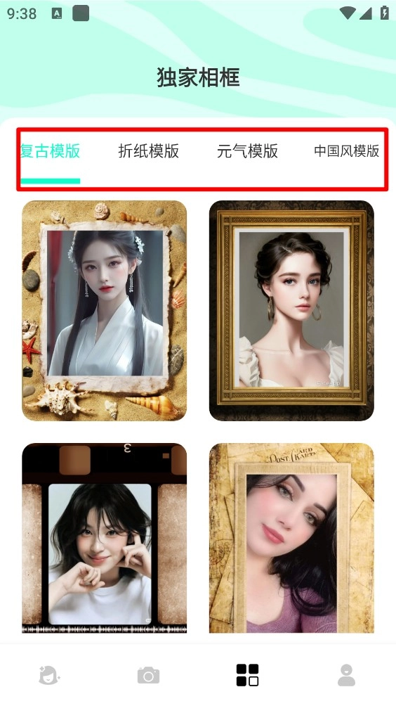 最后在“独家相框”页面,能够挑选多个相框模板来制作图片。