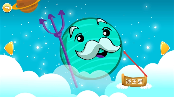 在查看【海王星】这类行星时,可以借助它的形象特征(比如三叉戟元素)和名称标识来帮助记住该行星的特点,还能通过切换按钮查看其他行星。