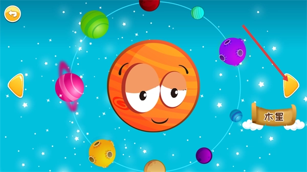 在查看单个行星(例如【木星】)时,能够借助左右箭头按钮来切换不同的行星,与此同时查看与之对应的行星名称标识,从而加深对行星的认知。