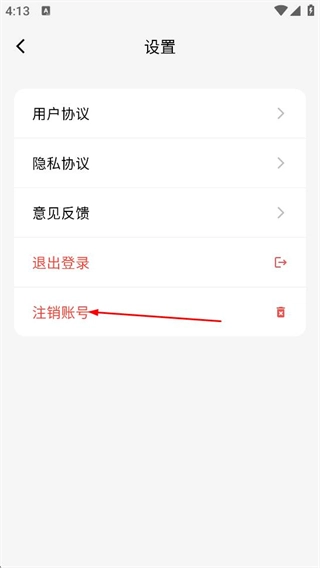 接下来在设置页面里,点击注销账号的选项,触发确认的弹窗。