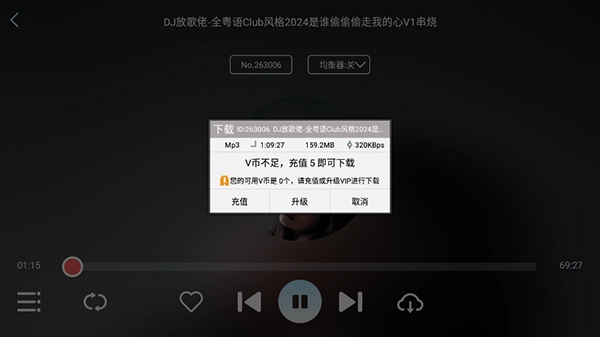 然后我们支付完歌曲所需的V币后,就能把这首歌下载下来了。