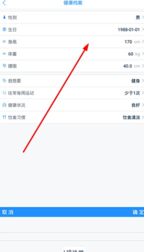 最后在“健康档案”界面,我们就可以点击“身高”选项来重新设置身高了。