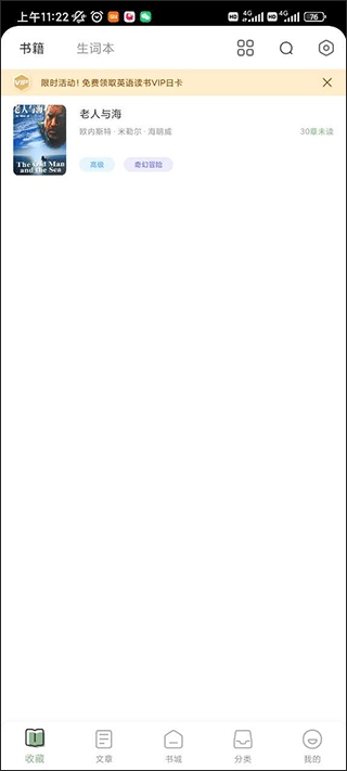 打开英语读书,点击我们需要翻译的小说