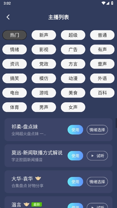 超多主播声音可选:多位合成主播,男声、女声、童声随意切换