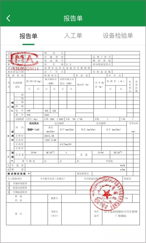 添加完后即可进行车检,查看报告单。