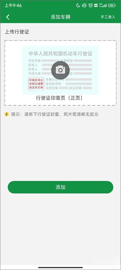 进行添加车辆,并上传行驶证。