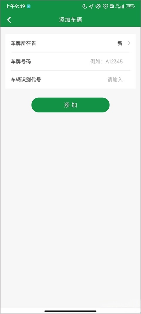 你也能够手动输入相关信息,包括省份、车牌号码以及车辆识别代号。