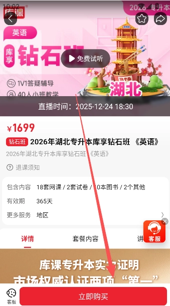 点击对应的课程班级和学习资源详情界面,开始购买。
