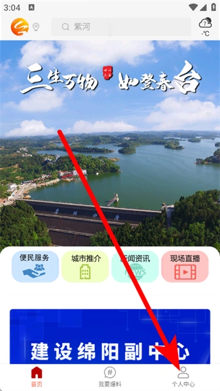打开直播三台,点击底部的个人中心,进入个人中心页面。