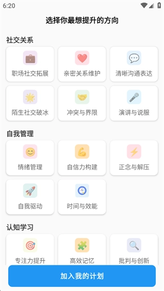 首先要确定用户最希望提升的方向,确定好之后,点击“加入我的计划”按钮。