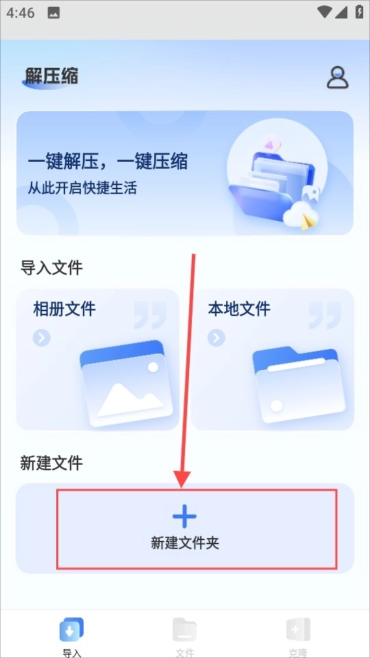 在应用首页,选择“新建文件夹”,如下图所示。