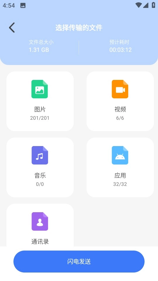 然后直接点击“闪电发送”,等待新设备发现,连接成功后就能发送了。